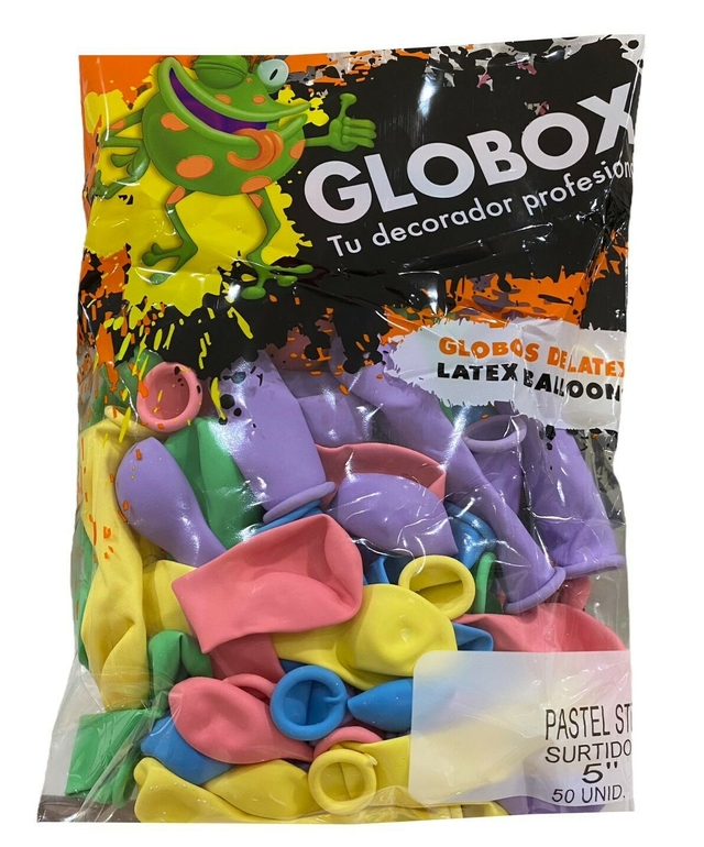 GLOBO PASTEL GLOBOX 5″ SURTIDOS x 50 u